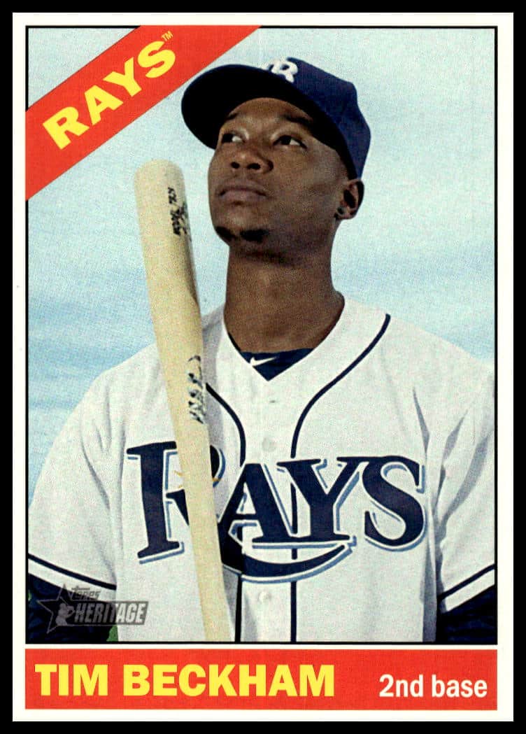 This BaseballΒ card, from 2015 is part of the Topps Heritage High NumberΒ card set. Tim Beckham is featured and has a card number of 576.