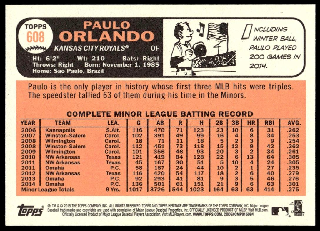 Home Β» 2015 Topps Heritage Paulo Orlando #608