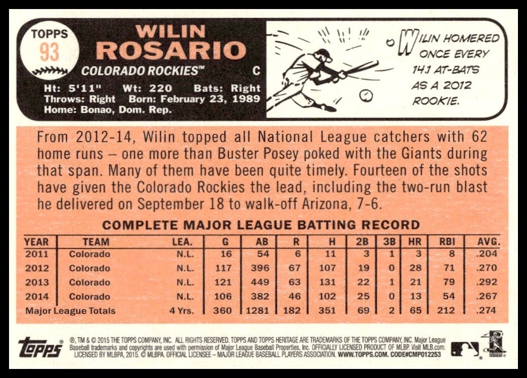 Home Β» Shop Β» 2015 Topps Heritage Wilin Rosario #93