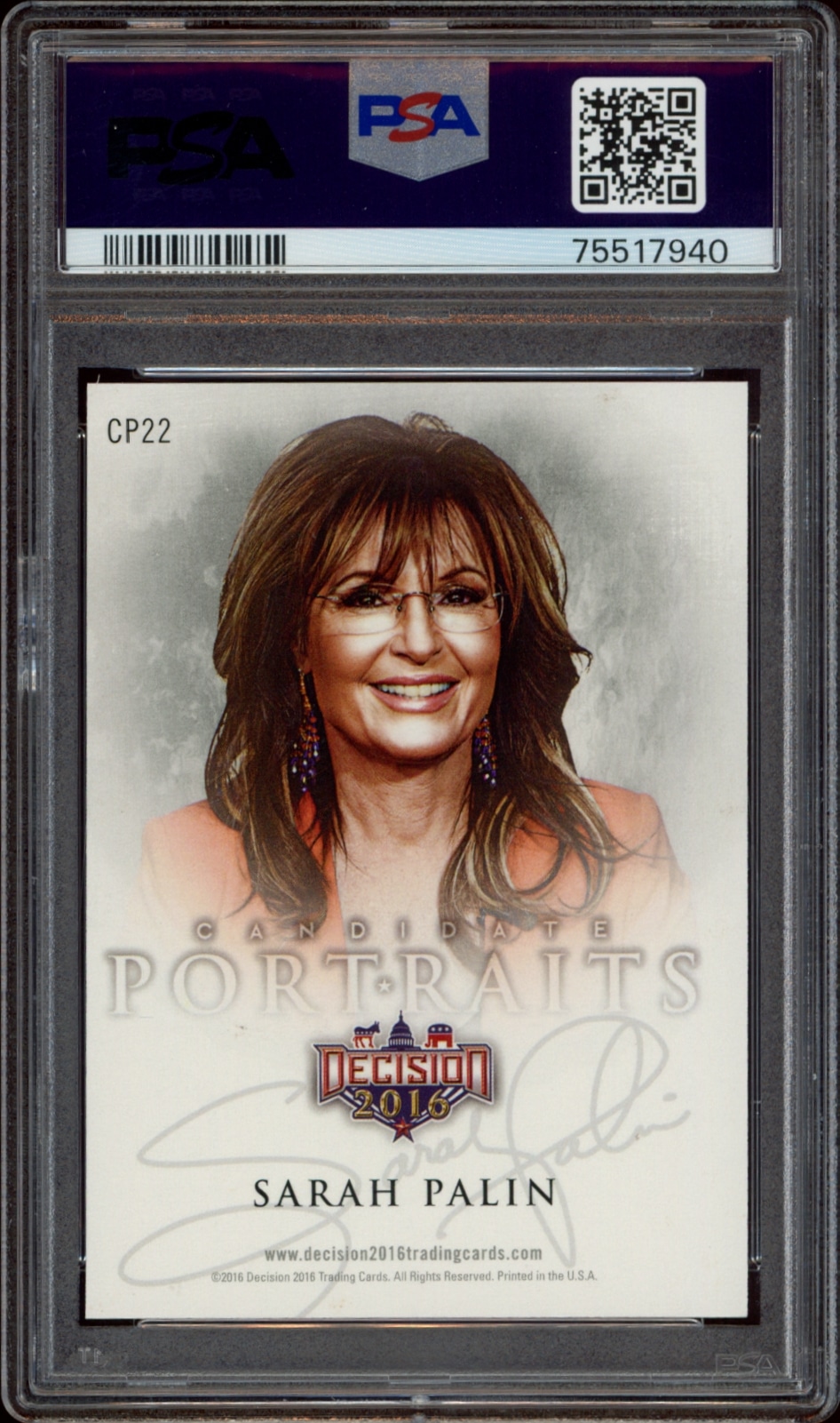I just got the 2016 Leaf Decision Sarah Palin Candidate Portraits graded PSA 8. Love the sharp detail and color. A great addition for collectors of political memorabilia, really captures her essence. Super happy with it!
