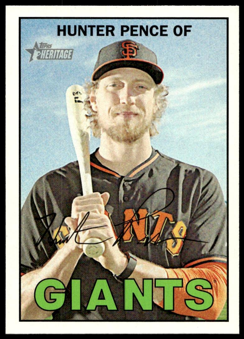 This Baseball card, from 2016 is part of the Topps Heritage card set. Hunter Pence is featured and has a card number of 200.