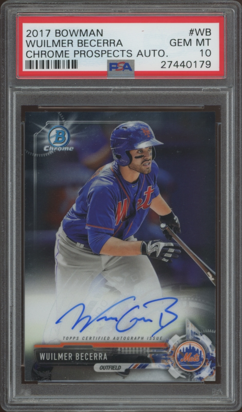2017 Bowman Wuilmer Becerra Chrome Prospect Autograph, PSA 10, a must-have for collectors seeking premium graded sports cards.