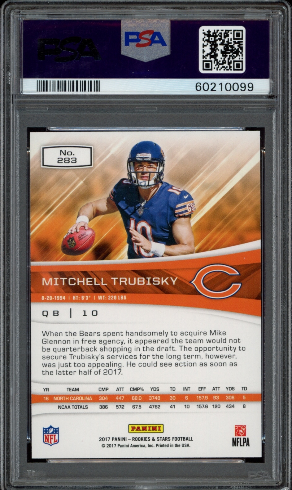 2017 Panini Rookies & Stars Mitchell Trubisky #283, graded PSA 9, a must-have for collectors and fans. Elevate your collection today!