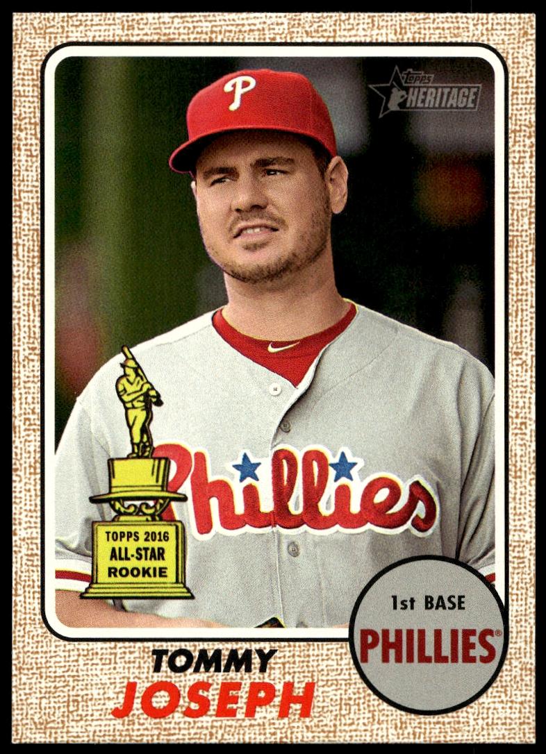 This Baseball card, from 2017 is part of the Topps Heritage card set. Tommy Joseph is featured and has a card number of 190.