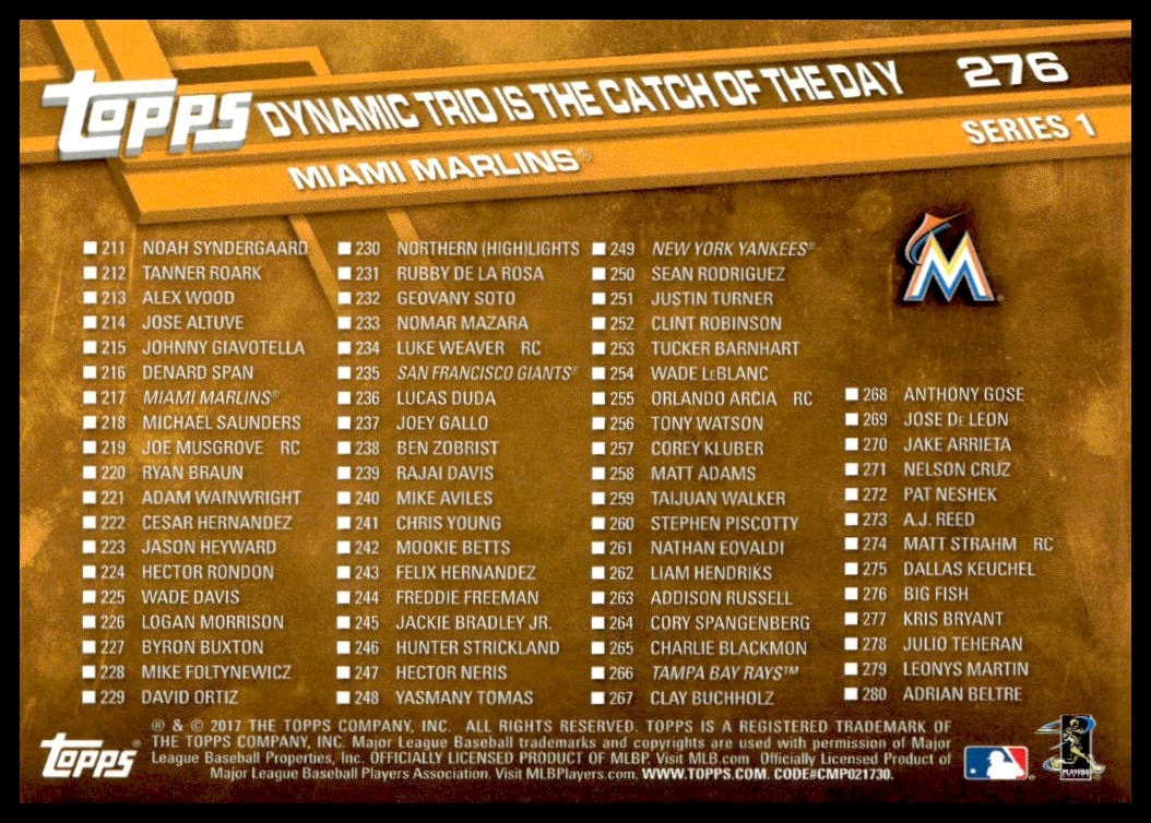 This BaseballΒ card, from 2017 is part of the Topps Series 1Β card set. Big Fish is featured and has a card number of 276.