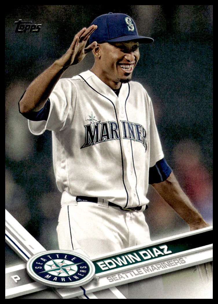 This Baseball card, from 2017 is part of the Topps Series 2 card set. Edwin Diaz is featured and has a card number of 522.