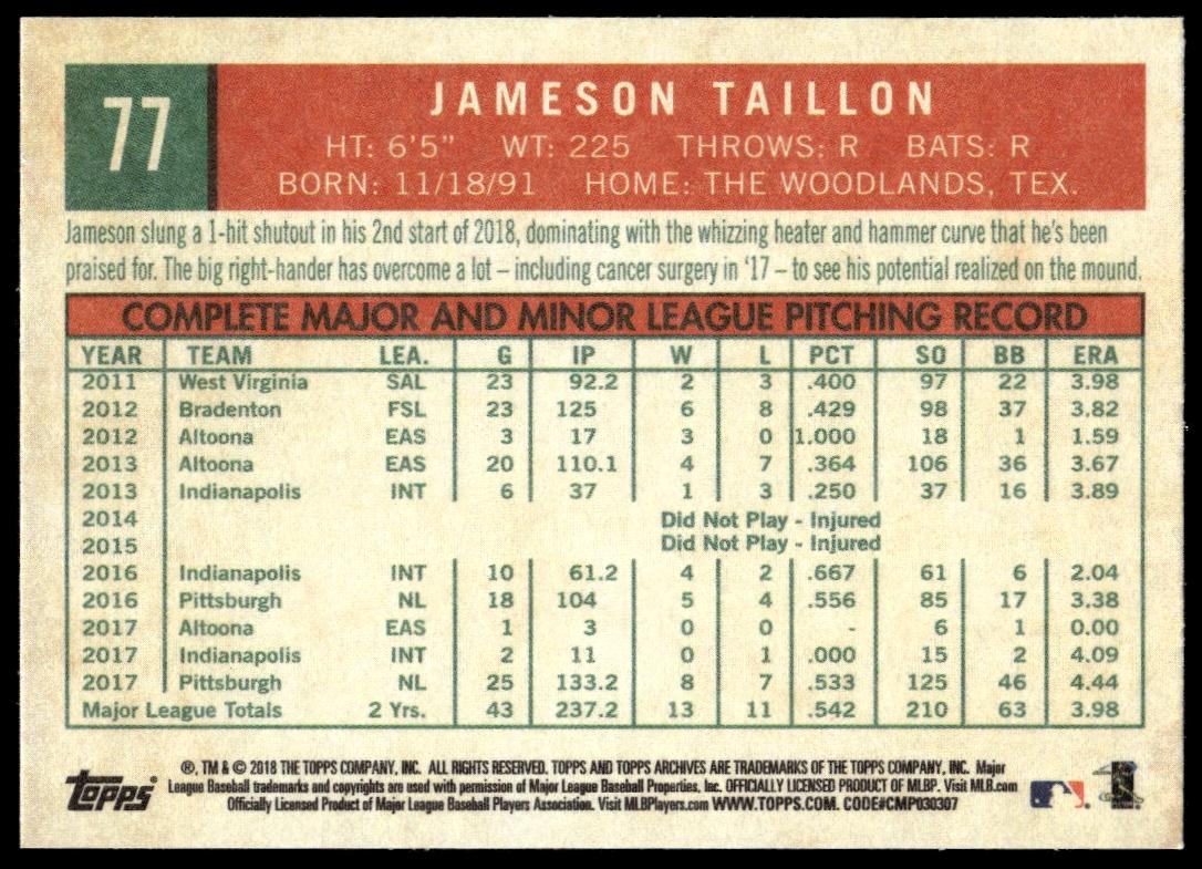 2018 Topps Archives Jameson Taillon #77