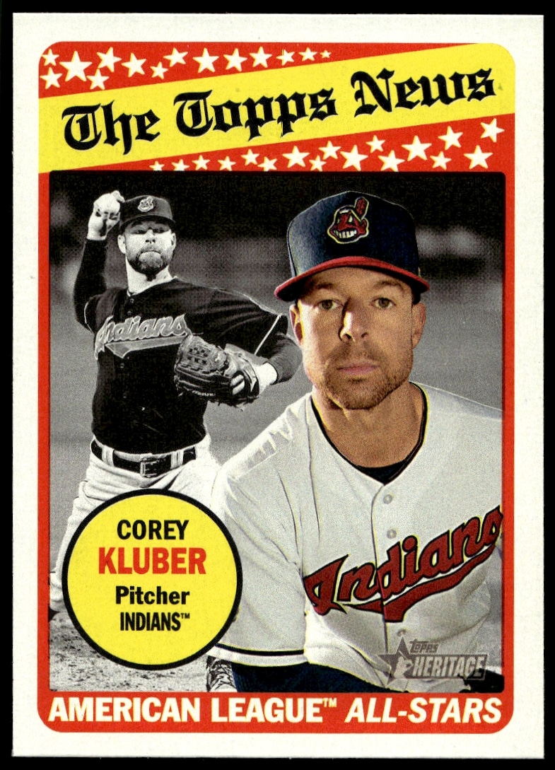 This Baseball card, from 2018 is part of the Topps Heritage card set. Corey Kluber is featured and has a card number of 238.