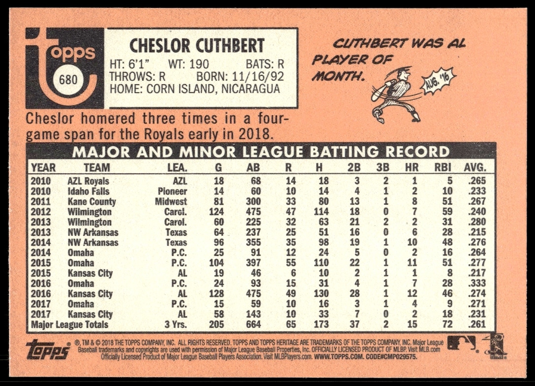 2018 Topps Heritage High Number Cheslor Cuthbert #680
