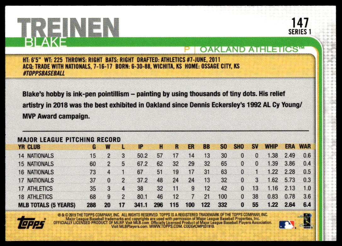2019 Topps Series 1 Blake Treinen #147