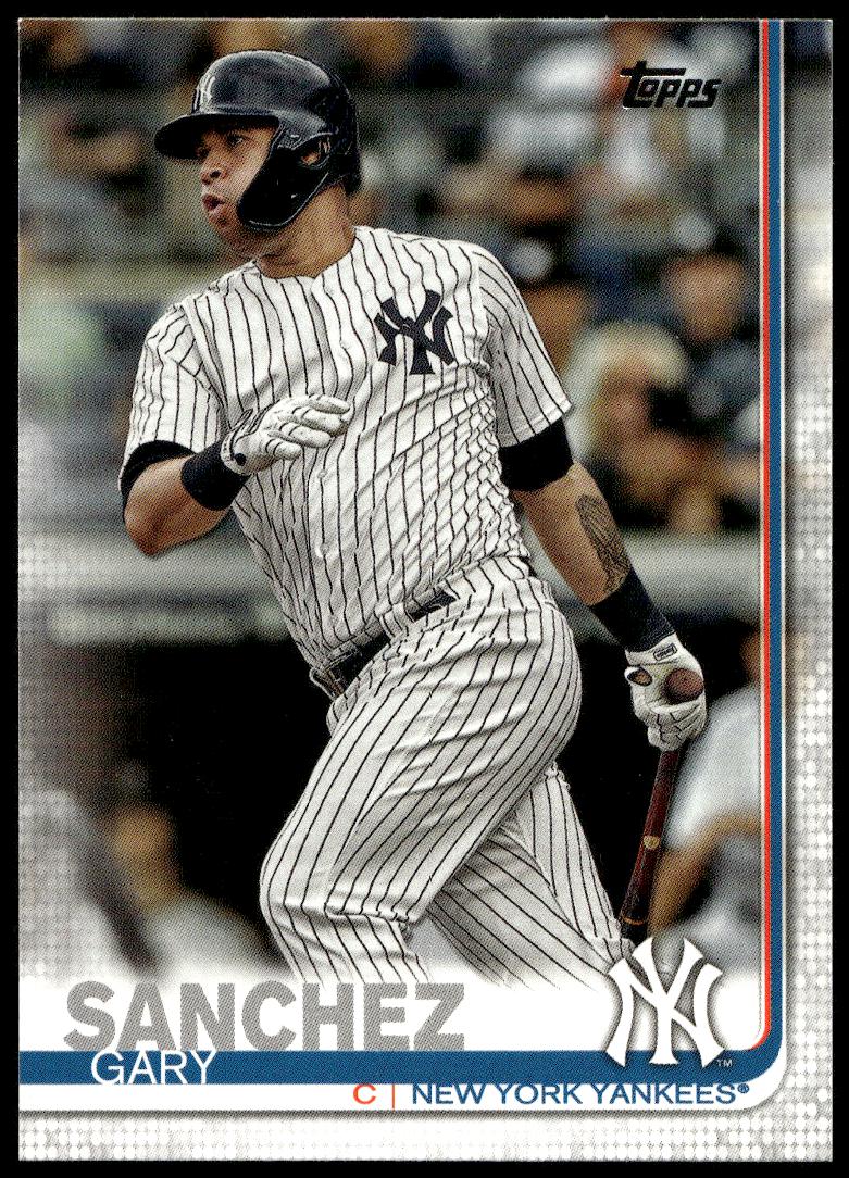 This Baseball card, from 2019 is part of the Topps Series 1 card set. Gary Sanchez is featured and has a card number of 22.