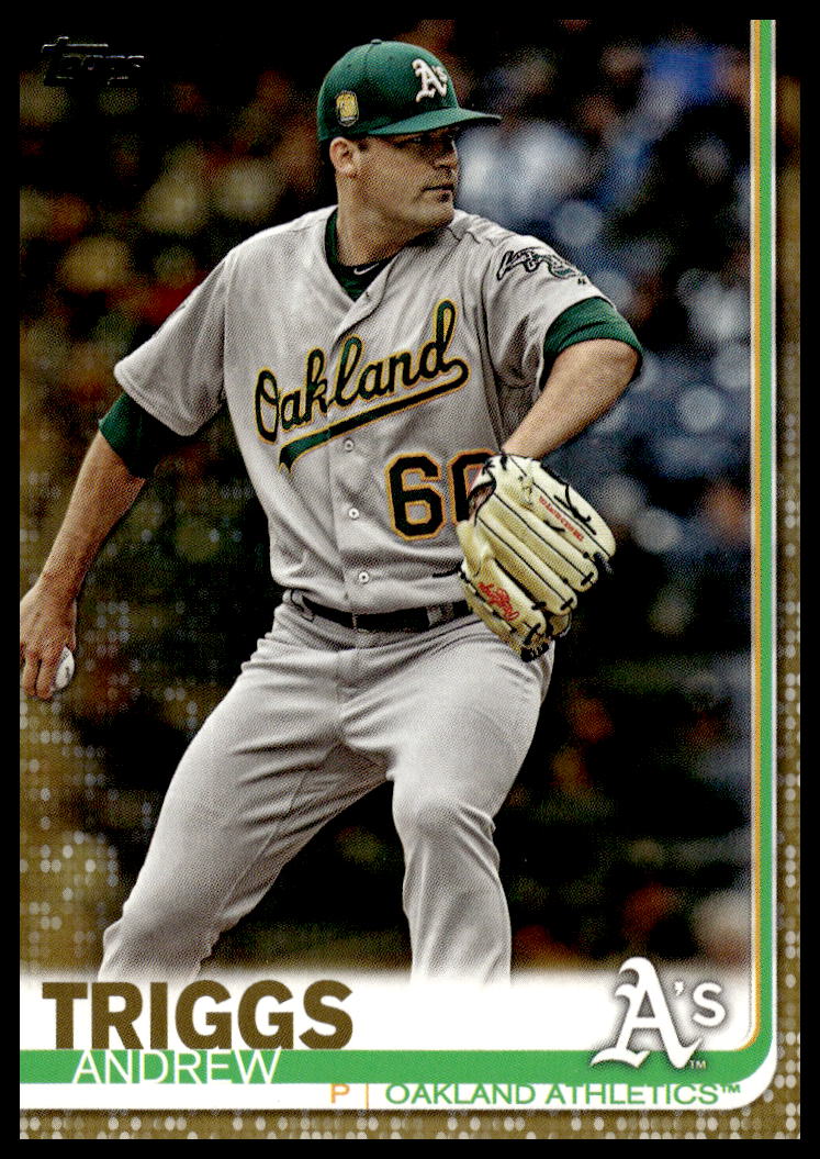 This Baseball card, from 2019 is part of the Topps Series 2 card set. Andrew Triggs is featured and has a card number of 565.