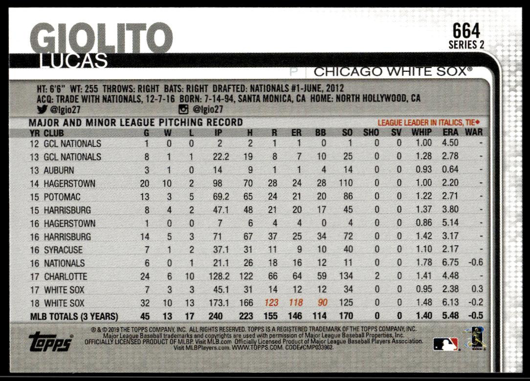 2019 Topps Series 2 Lucas Giolito #664