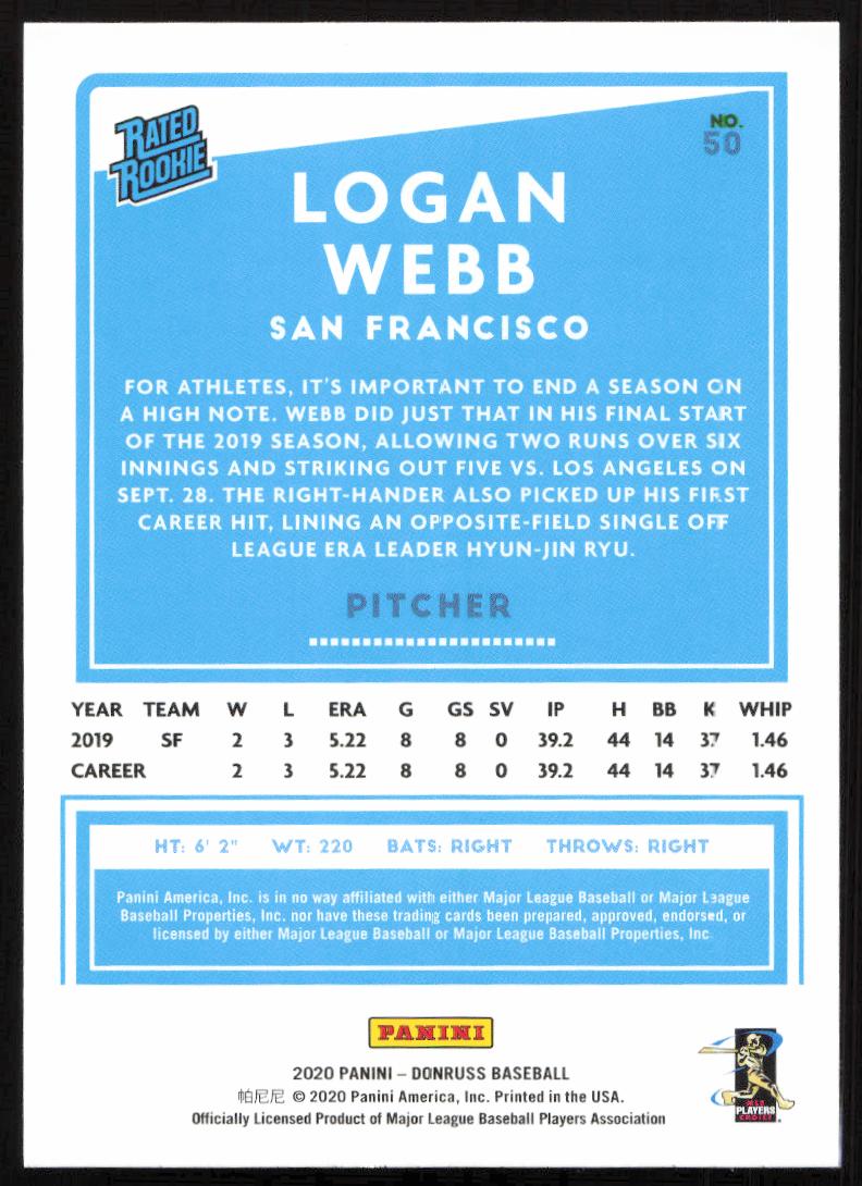 2020 Donruss Logan Webb #50