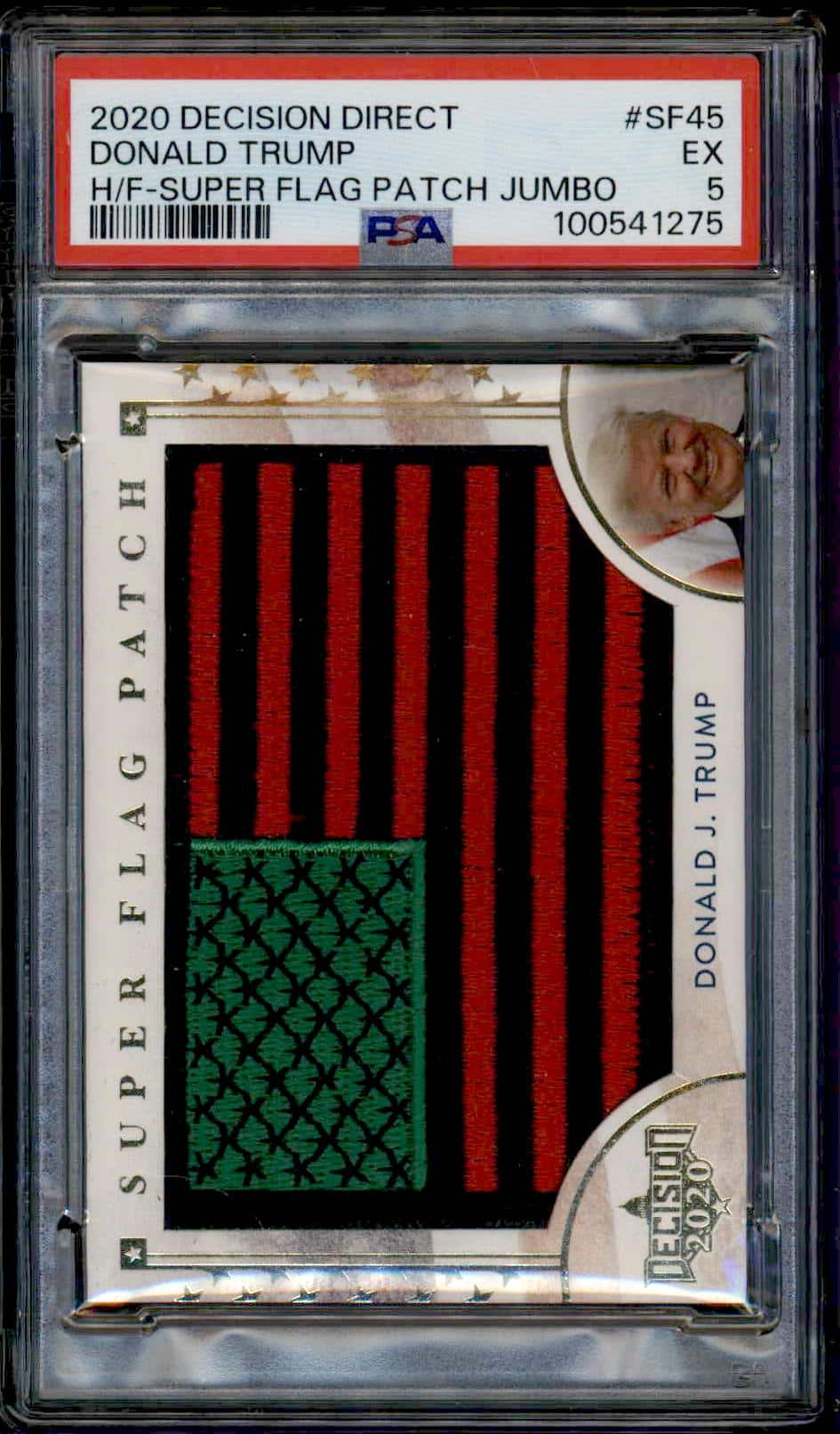 Limited edition Donald Trump Super Flag Patch from 2020, graded PSA 5. A must-have collectible for political memorabilia enthusiasts!