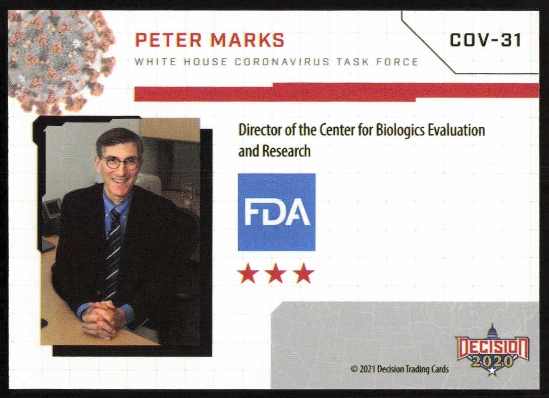 This Political card, from 2020 is part of the Leaf Decision Series 2 card set. White House Task Force is featured and has a card number of COV-31.