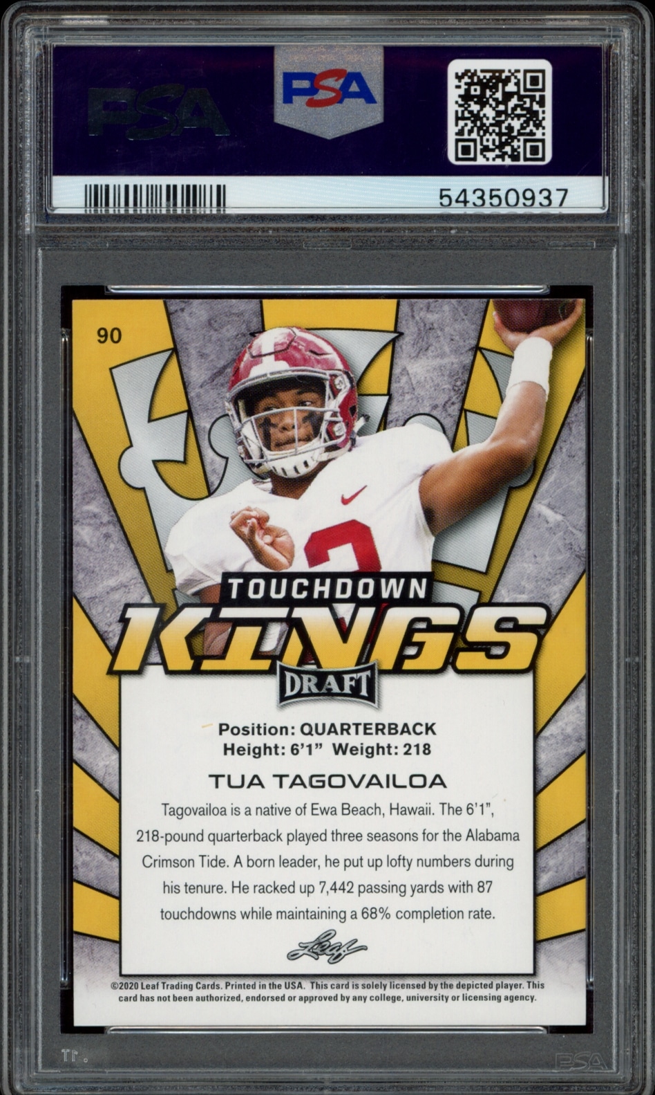 2020 Leaf Draft Tua Tagovailoa #90, graded PSA 10, is a must-have collectible for fans and investors alike. Secure this gem today!