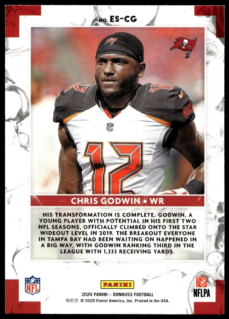 This Football card, from 2020 is part of the Panini Donruss card set. Chris Godwin is featured and has a card number of ES-CG.