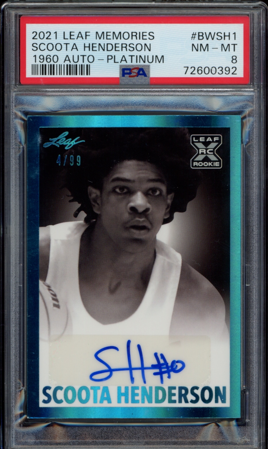 2021-22 Leaf Memories Scoota Henderson 1960 Leaf Signatures Platinum #BW-SH1 (/99) (Auto) (PSA 8)
