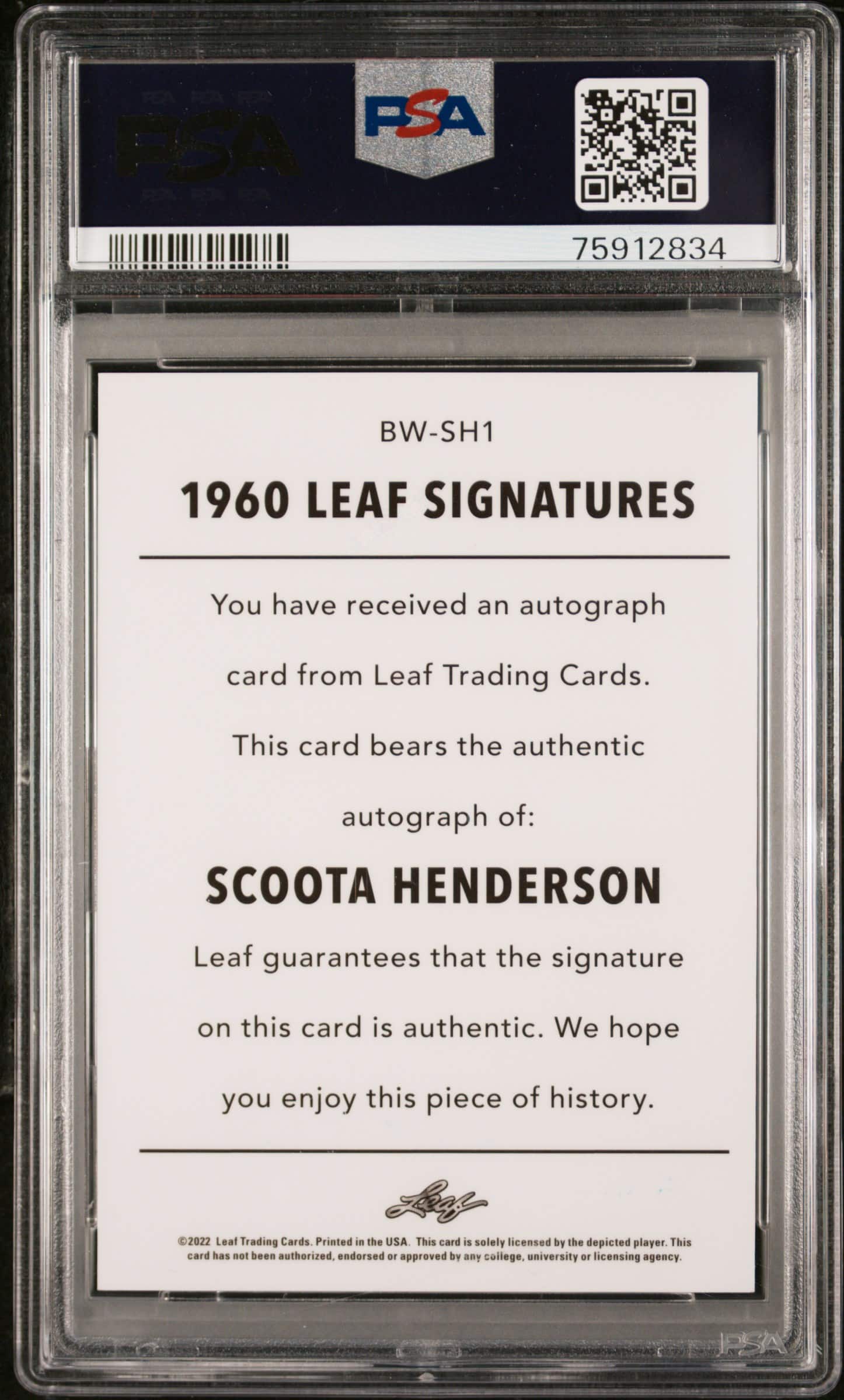 Limited edition 2021-22 Leaf Memories Scoota Henderson autographed card, graded PSA 6. Only 20 made, a must-have for collectors!