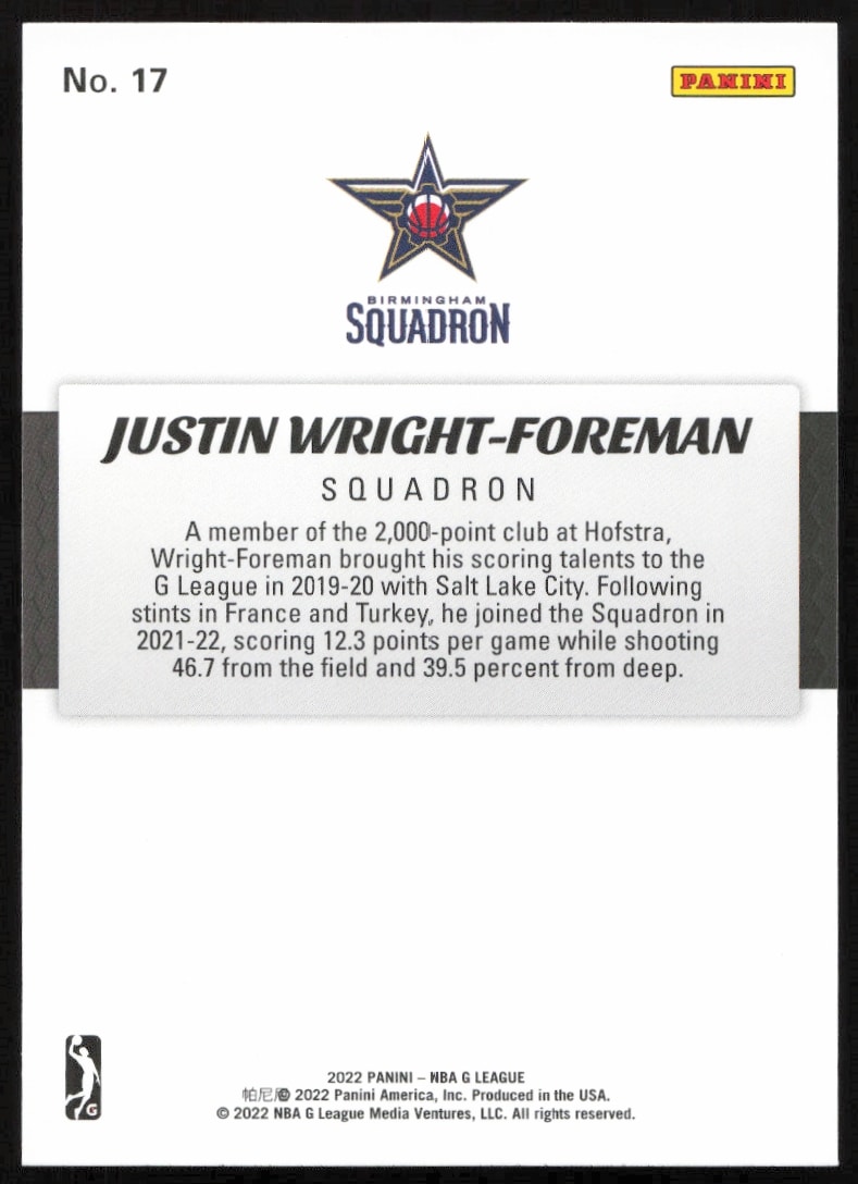 Home Β» 2021-22 Panini NBA G League Justin Wright-Foreman #17