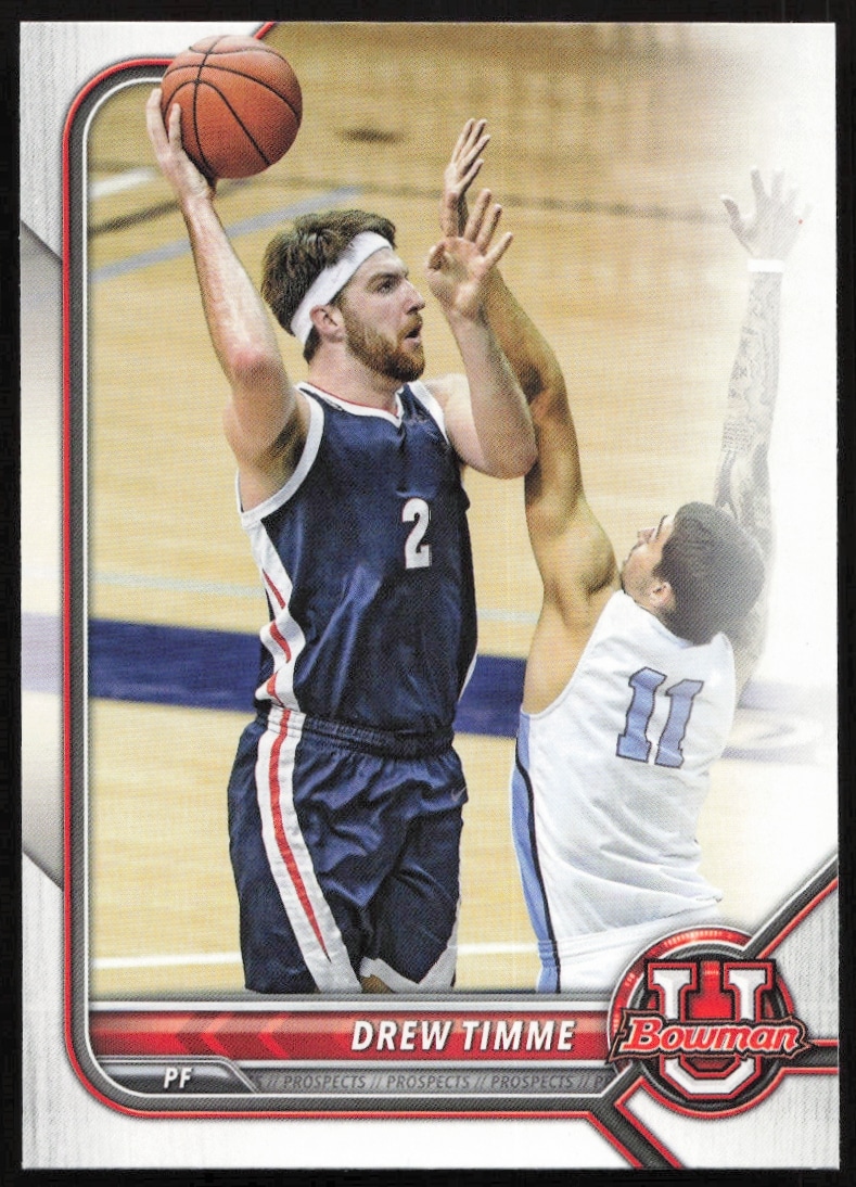 This Basketball card, from 2021 is part of the Bowman University card set. Drew Timme is featured and has a card number of 92.