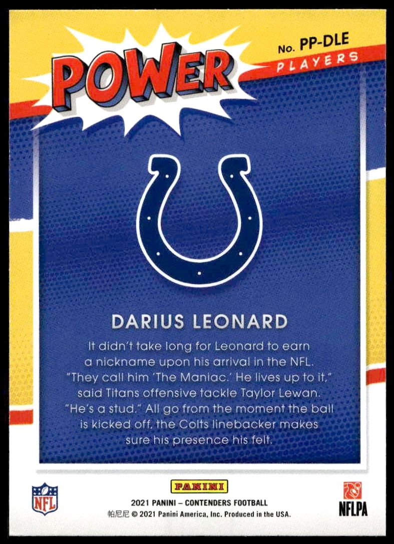2021 Panini Contenders Darius Leonard Power Players #PP-DLE
