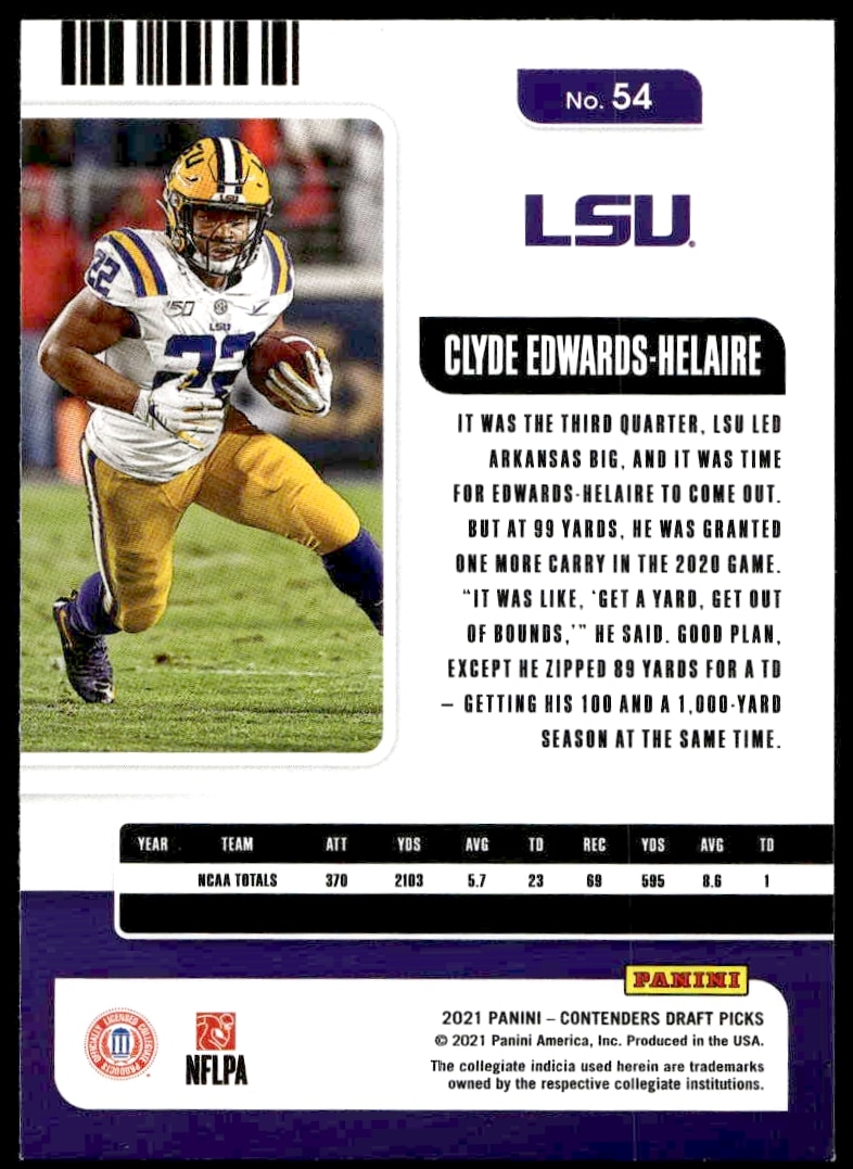 2021 Panini Contenders Draft Picks Clyde Edwards-Helaire #54