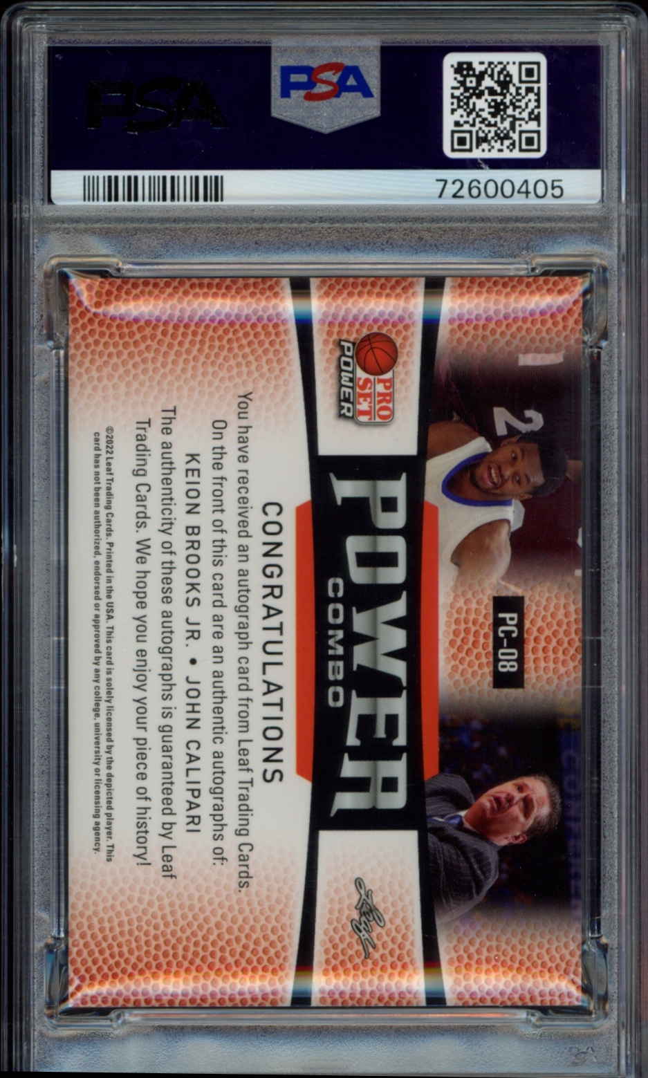 Limited edition 2021 Pro Set Power Keion Brooks Jr / John Calipari Platinum auto card (#PC-08/20) in PSA 9 condition, perfect for collectors.