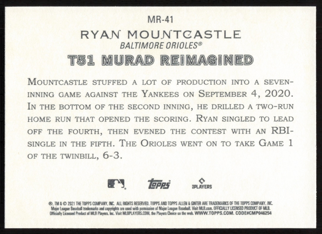 2021 Topps Allen & Ginter Ryan Mountcastle T51 MURAD Reimagined #MR-41