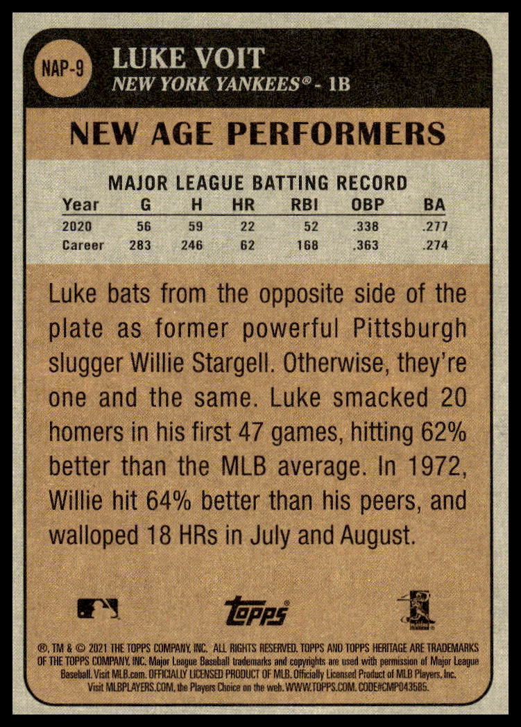 Home » 2021 Topps Heritage Luke Voit New Age Performers #NAP-9