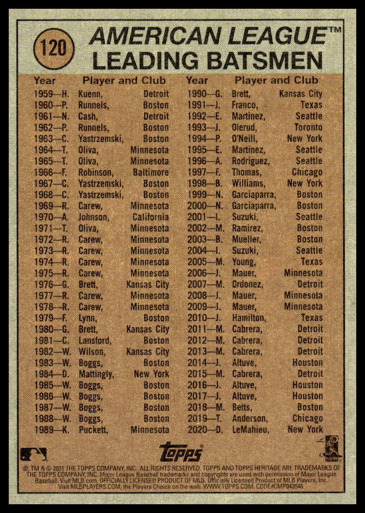 This BaseballΒ card, from 2021 is part of the Topps HeritageΒ card set. Max Kepler is featured and has a card number of 120.