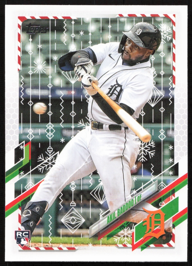 This Baseball card, from 2021 is part of the Topps Holiday card set. Akil Baddoo is featured and has a card number of HW101.