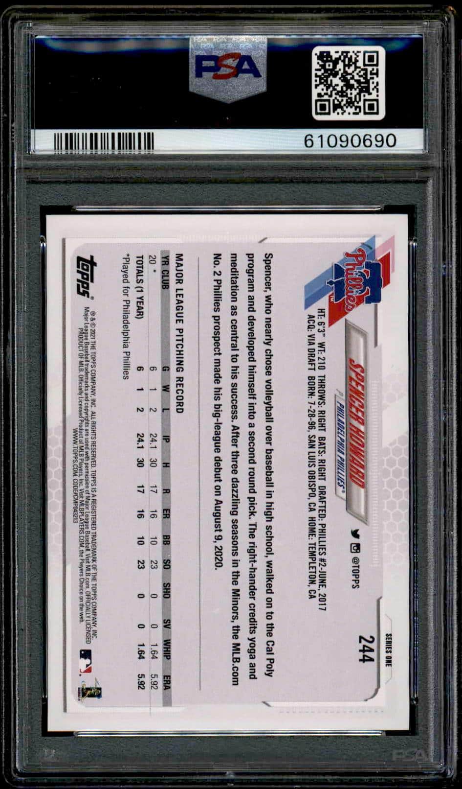 2021 Topps Spencer Howard #244 in PSA 10 condition is a must-have for collectors seeking high-quality rookie cards.