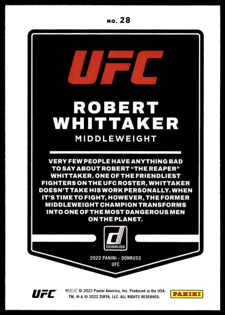 Home Β» 2022 Donruss UFC Robert Whittaker #28