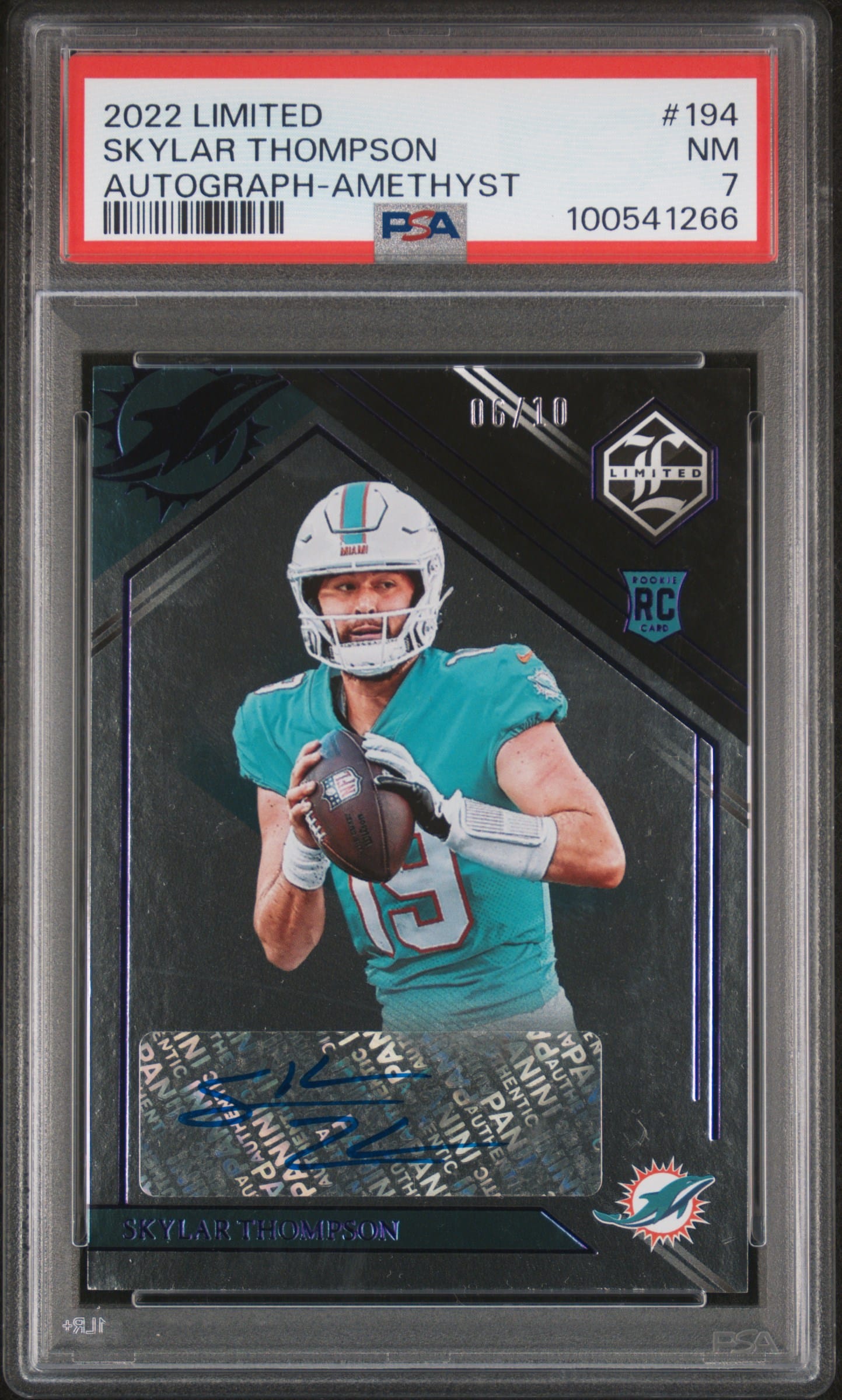 Limited edition Skylar Thompson autographed card, Amethyst #194 (/10). Graded PSA 7, a must-have for collectors.