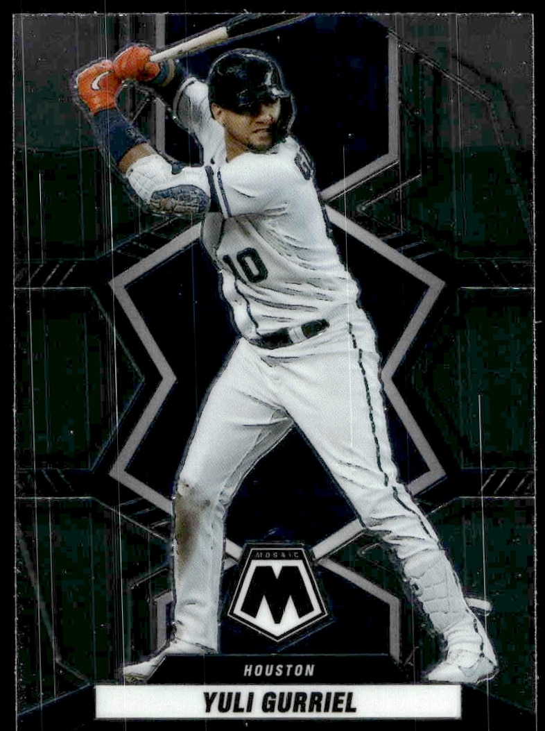 This Baseball card, from 2022 is part of the Panini Mosaic card set. Yuli Gurriel is featured and has a card number of 115.