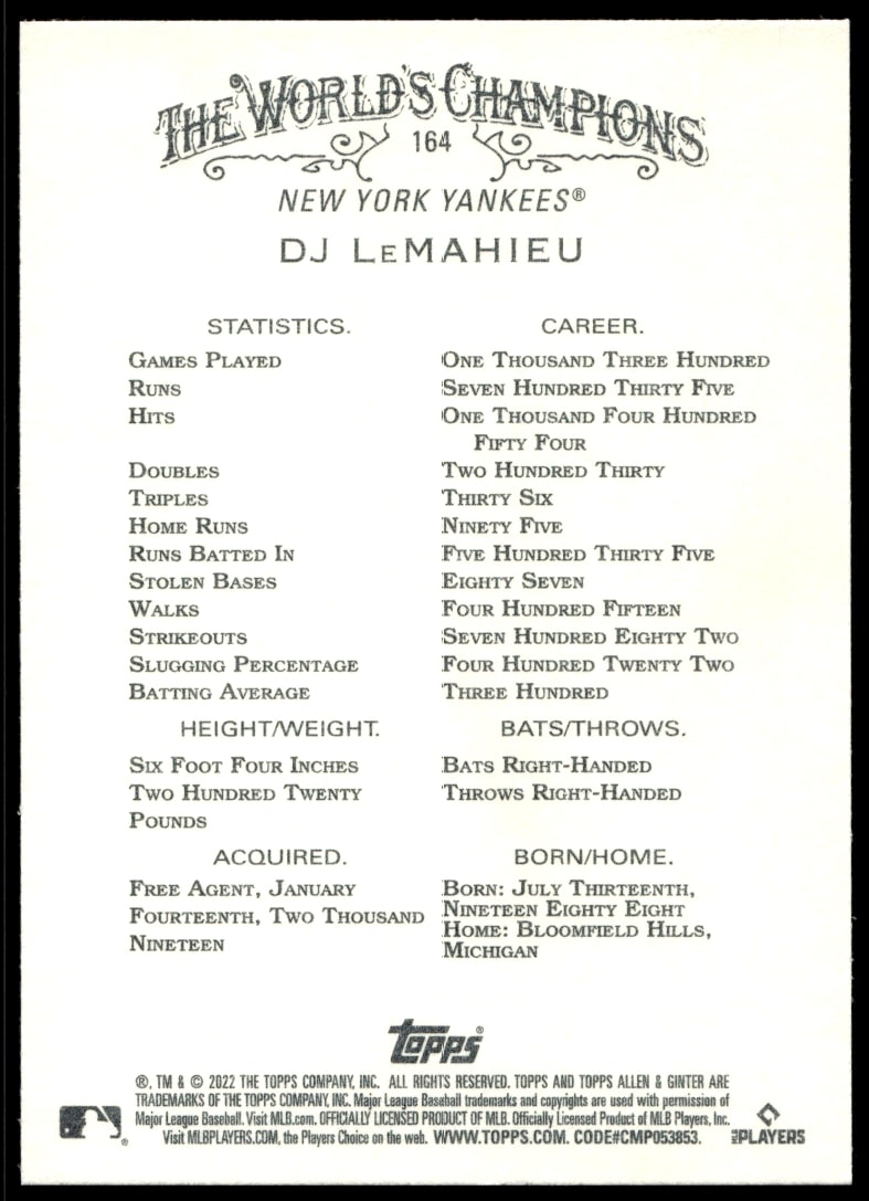 This BaseballΒ card, from 2022 is part of the Topps Allen & GinterΒ card set. Anthony Rizzo is featured and has a card number of 56.