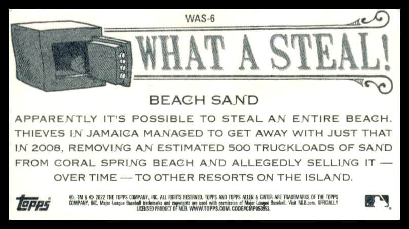 This Baseball card, from 2022 is part of the Topps Allen & Ginter card set. Beach Sand is featured and has a card number of WAS-6.