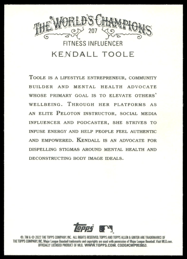 This Baseball card, from 2022 is part of the Topps Allen & Ginter card set. Kendall Toole is featured and has a card number of 207.