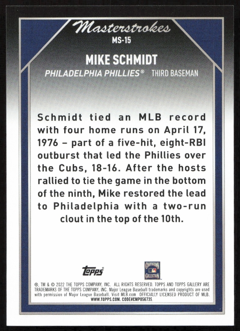 Home Β» 2022 Topps Gallery Mike Schmidt Masterstrokes #MS-15