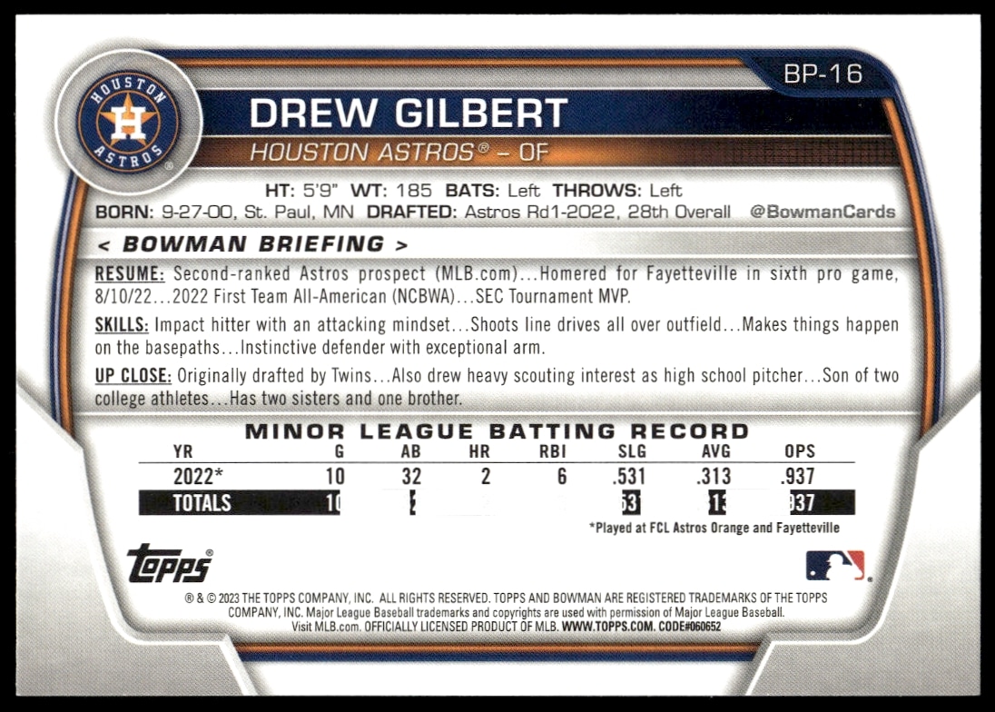 2023 Bowman Drew Gilbert Prospects #BP-16