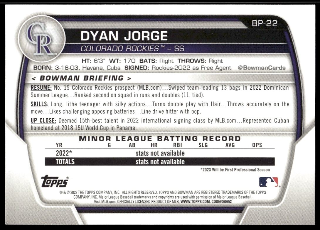 Home » 2023 Bowman Dyan Jorge Prospects #BP-22