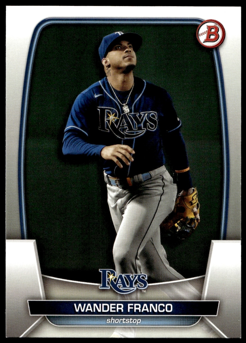 This Baseball card, from 2023 is part of the Bowman card set. Wander Franco is featured and has a card number of 97.
