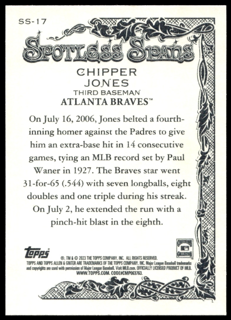 2023 Topps Allen & Ginter Chipper Jones Spotless Spans #SS-17