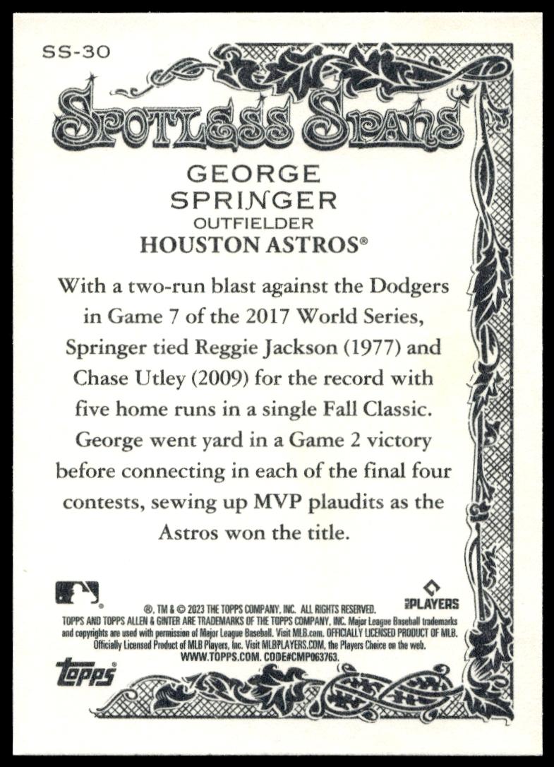 2023 Topps Allen & Ginter George Springer Spotless Spans #SS-30