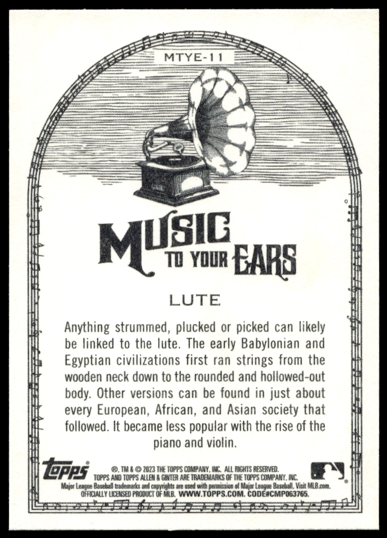 This Baseball card, from 2023 is part of the Topps Allen & Ginter card set. Lute is featured and has a card number of MTYE-11.