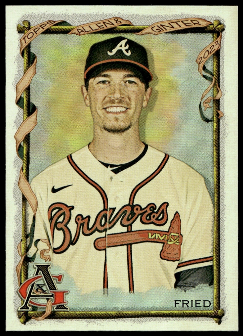 This BaseballΒ card, from 2023 is part of the Topps Allen & GinterΒ card set. Max Fried is featured and has a card number of 76.