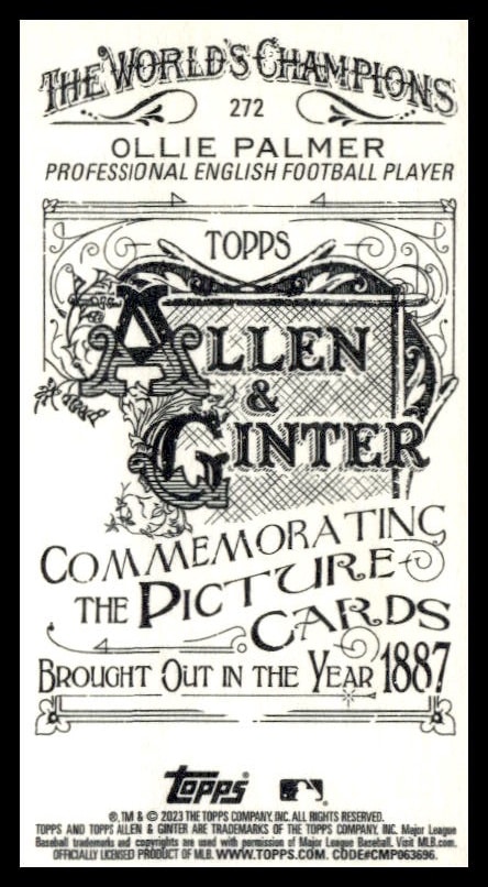 This Baseball card, from 2023 is part of the Topps Allen & Ginter card set. Ollie Palmer is featured and has a card number of 272.