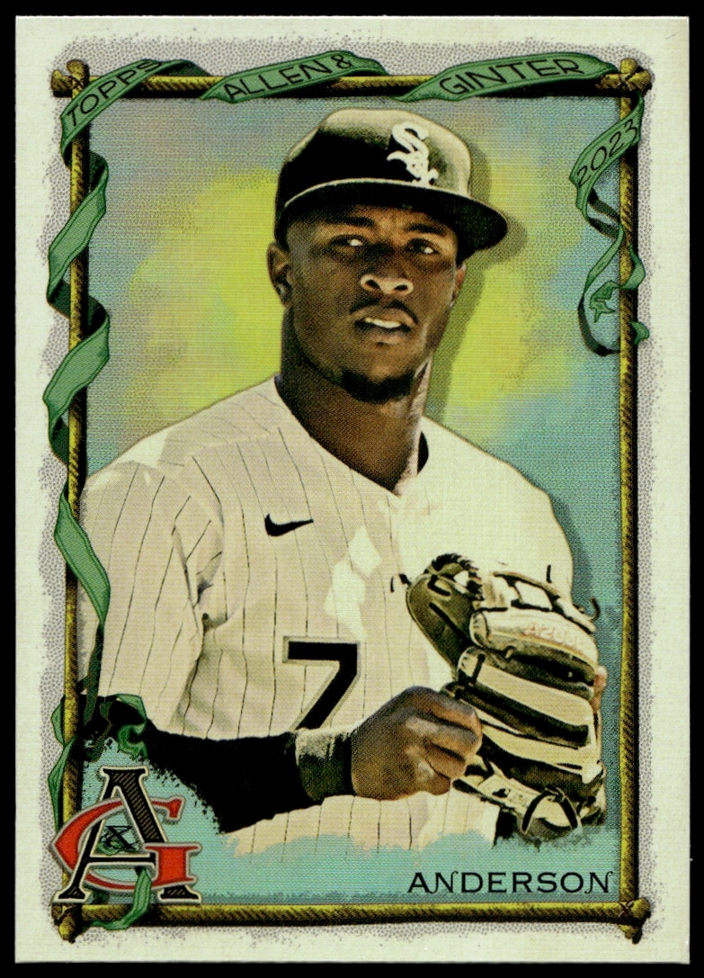 This BaseballΒ card, from 2023 is part of the Topps Allen & GinterΒ card set. Tim Anderson is featured and has a card number of 43.